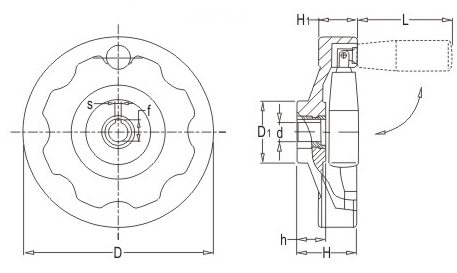 JS.101001 內(nèi)波紋手輪 顏色:亮光黑 材質(zhì):酚醛樹(shù)脂(膠木) 用途:適用于各類(lèi)機(jī)械裝備的操作調(diào)節(jié) 特性:光澤感強(qiáng),外形美觀,手柄可折疊。耐高溫、溶劑、機(jī)油及其他化學(xué)試劑。鋼制鐵芯表面處理防銹能力強(qiáng)。標(biāo)準(zhǔn)化使用,安裝簡(jiǎn)便