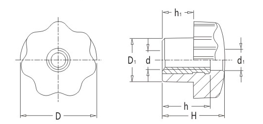 JS.102011 塑料星形把手 顏色:啞光黑 材質:增強尼龍 用途:適用于各類機械裝備、五金工具、舞臺燈光設備等行業(yè) 特性:啞光飾面、外形美觀、機械強度高、堅固耐用、標準化使用、安裝簡便