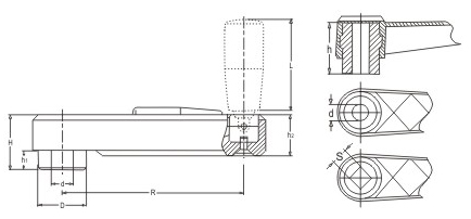 JS.103015 內藏搖手柄 顏色:黑色 材質:增強尼龍 用途:適用于各類機械設備的調節(jié) 特性:啞光飾面、手柄可折疊、外形美觀、機械強度高、標準化使用、安裝簡便