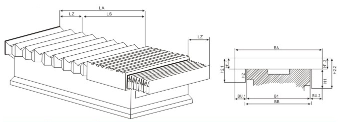 標準護罩使用在機床高立柱和大型機床長導軌上,結(jié)構合理,行走均勻,堅固耐用。
